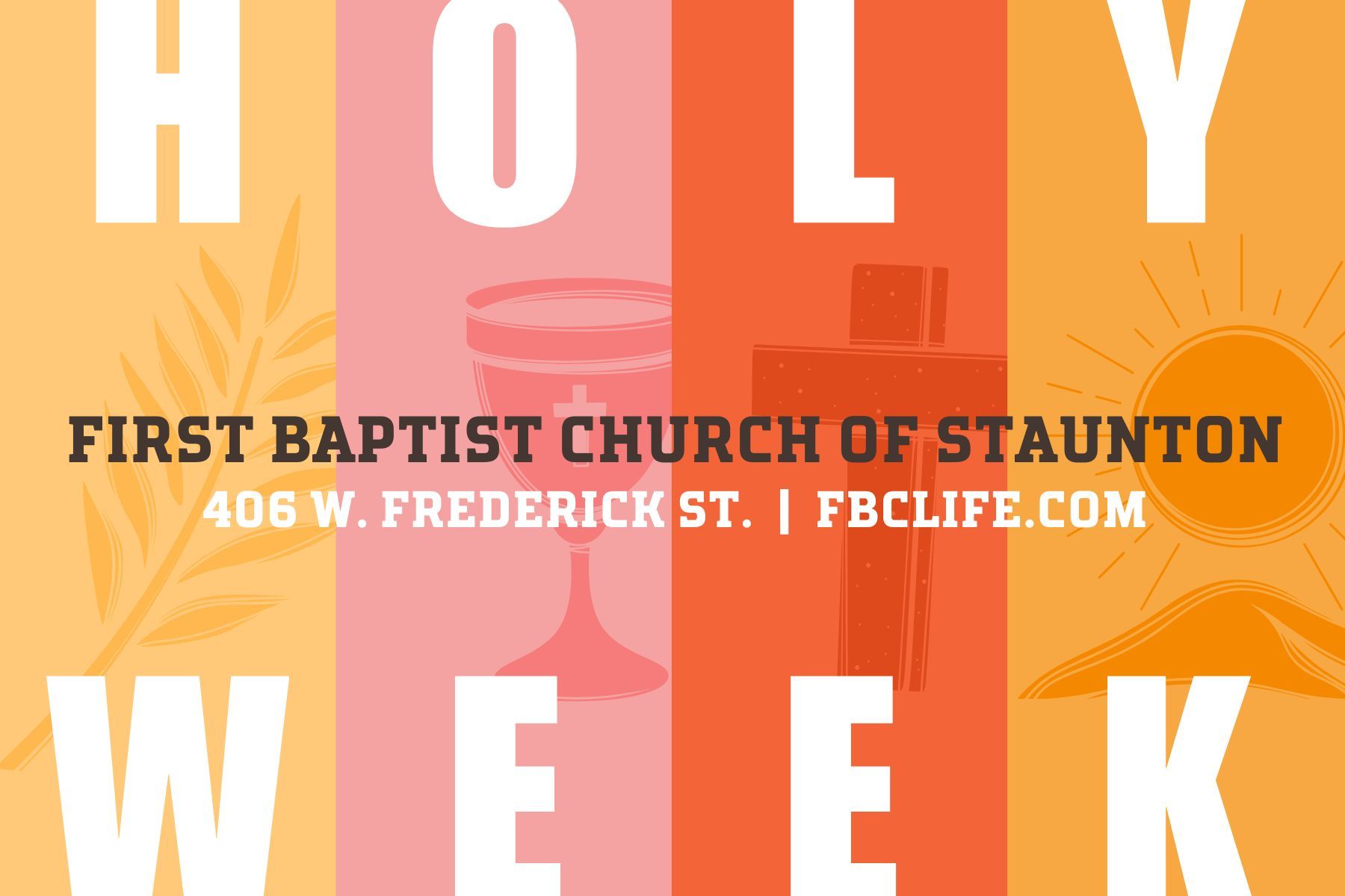 Beginning on Palm Sunday we will enter into a week of contemplation, recognition, and celebration of Easter. Please mark your calendars and join us.